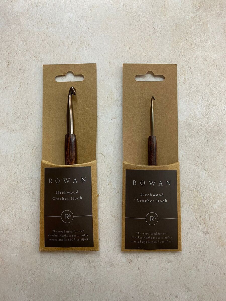 Manufactured from FSC-certified laminated birchwood, Rowan crochet hooks are beautifully crafted to ensure the smoothest handling whilst crocheting. Available in a variety of sizes from 2 mm up to 10mm, the hooks are fashioned in a beautiful bronze colour with a birchwood handle. The Rowan logo and mm/US needle sizes are printed in silver on the handle.