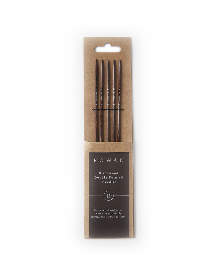 Manufactured from FSC certified wood sourced from sustainable forests, our Rowan birchwood double-pointed needles are a delight to hold with their lightness and warmth, yet are exceptionally strong and durable. Available in a range of sizes from 2.5mm to 8.0mm, these double-pointed needles come in packs of 5.